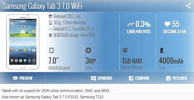 Модельная совместимостьSamsung Galaxy Tab 3 7.0 P3210