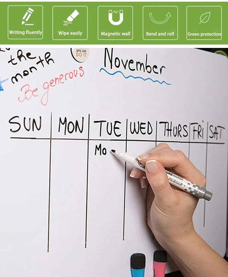 Посылка включает в себя: 1 белая доска, 8 маркеров, 1 ластик Задняя часть белой доски покрыта железными свойствами. Магнитные продукты могут быть адсорбированы на его поверхности.