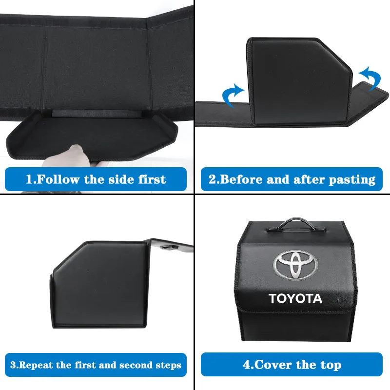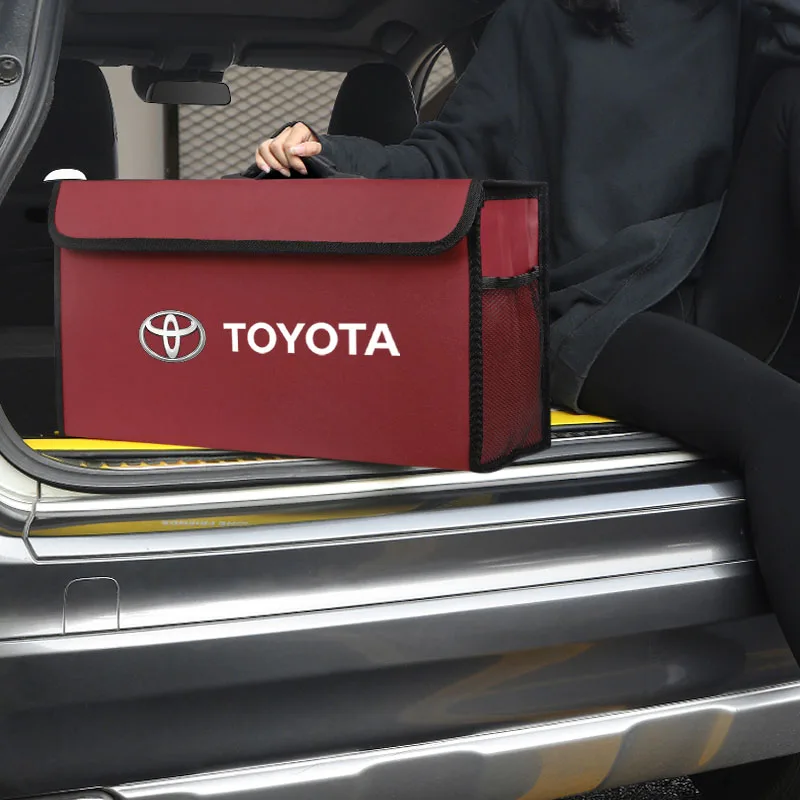 Многоразовая складная коробка для хранения с логотипом автомобиля, кожаная сумка для кемпинга для Toyota CHR Corolla Camry Prius Yaris Hilux Aygo Super Verso Auris Rav4 Avensis Prado Sienna Avalon Fortuner Highlander Mark-X Mirai Prius