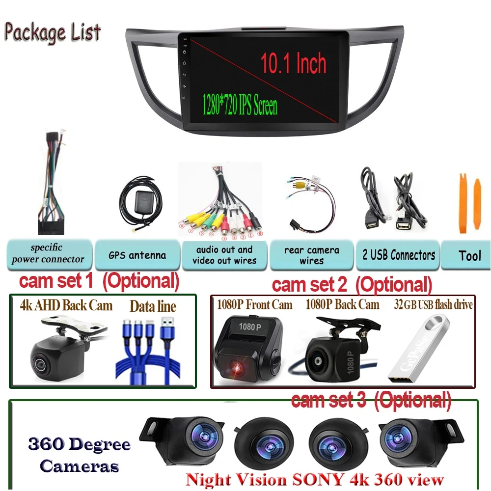 Автомобильный стерео Мультимедийный проигрыватель 360, камера для H...