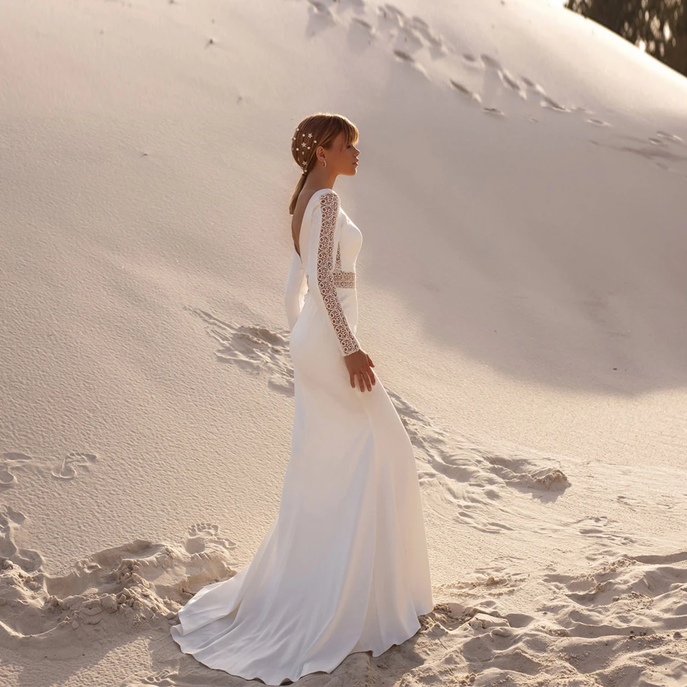Женское свадебное платье It's yiiya, белое кружевное платье трапециевидной формы с длинными рукавами и открытой спиной на лето