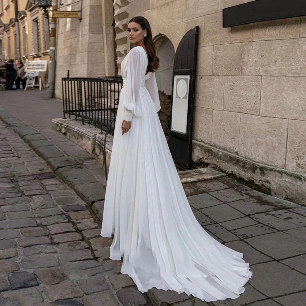Женское шифоновое платье It's yiiya, белое платье с V-образным вырезом, длинными рукавами и открытой спиной на лето 2019