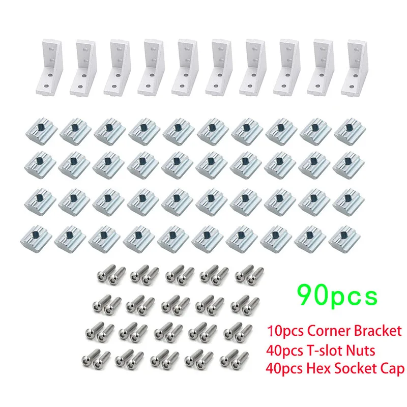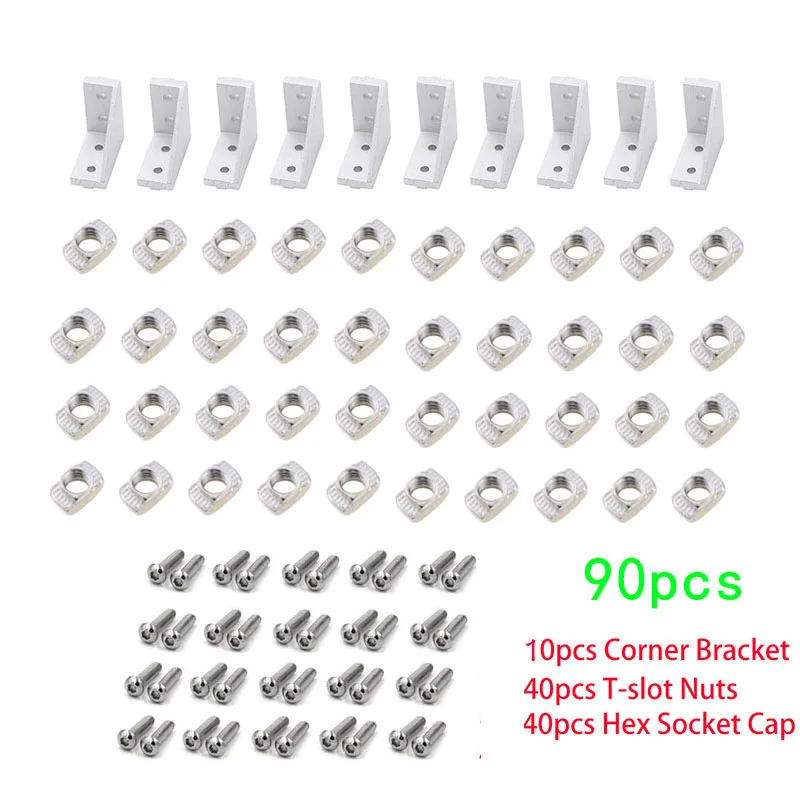 90 шт. 2040 алюминиевый профиль набор коннекторов 20 шт. угловой кронштейн + 40 шт. 20 серий M5 Т-образные гайки + 40 шт. m5x8 мм шестигранный гнездо E