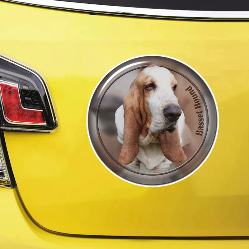 Печатный самоклеющийся наклейки на авто Бассет-хаунд водонепроницаемые наклейки на машину стикер этикеты наклейки стайлинга автомобилей украшения на бампере автомобиля заднее стекло
