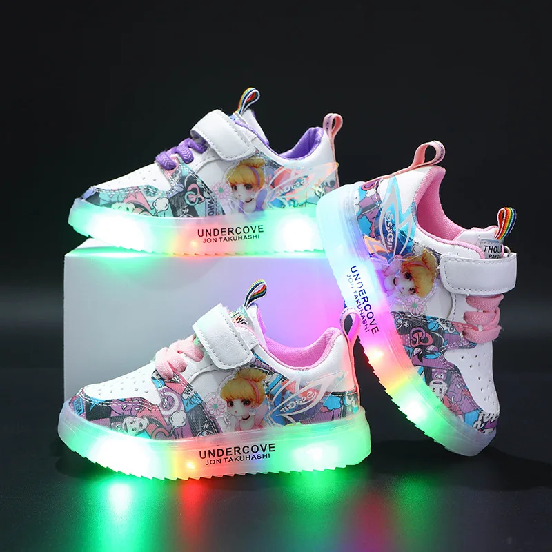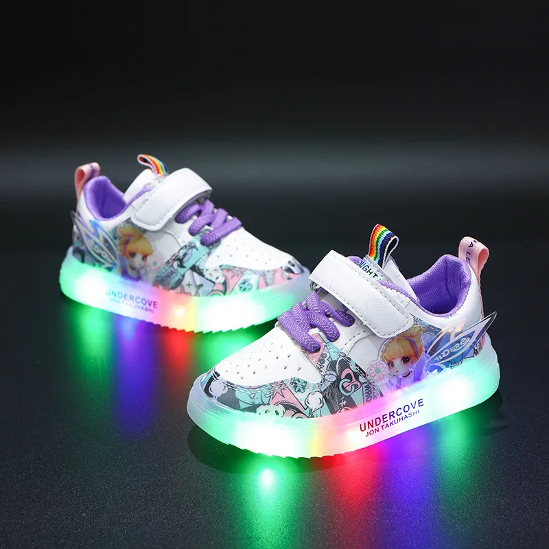 Новая кожаная обувь для девочек, светодиодная лампа, детская обувь для детей 1-6 лет, спортивная обувь для отдыха