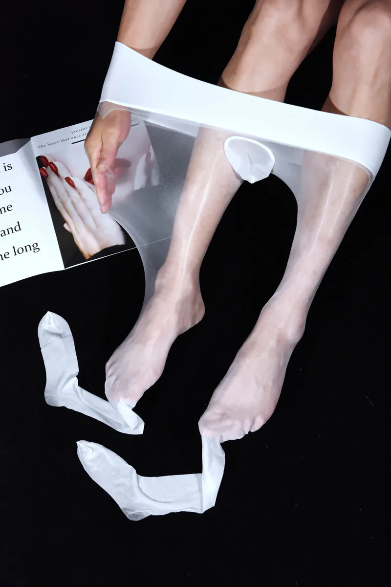 Модные новые ультратонкие чулки, мужское белье, эластичные бесшовные колготки, шелковые чулки, пикантные обтягивающие дышащие глянцевые колготки