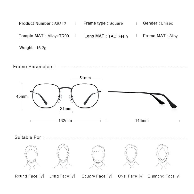 Очки унисекс квадратные с защитой от синего света, S2394FLG