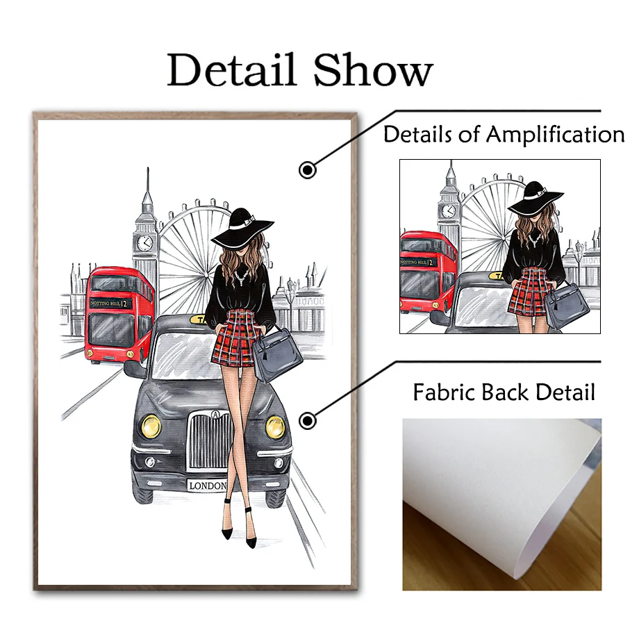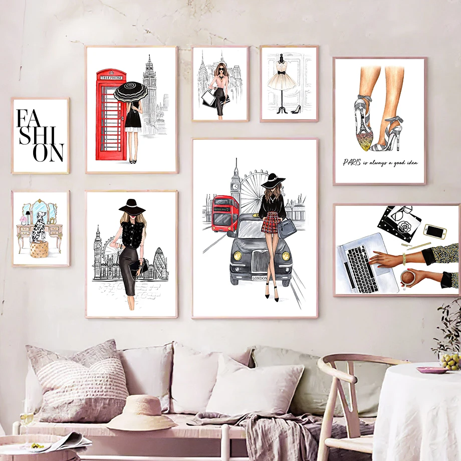 Модная Картина на холсте с изображением платья девушки собаки и города, скандинавские постеры и принты для украшения гостиной