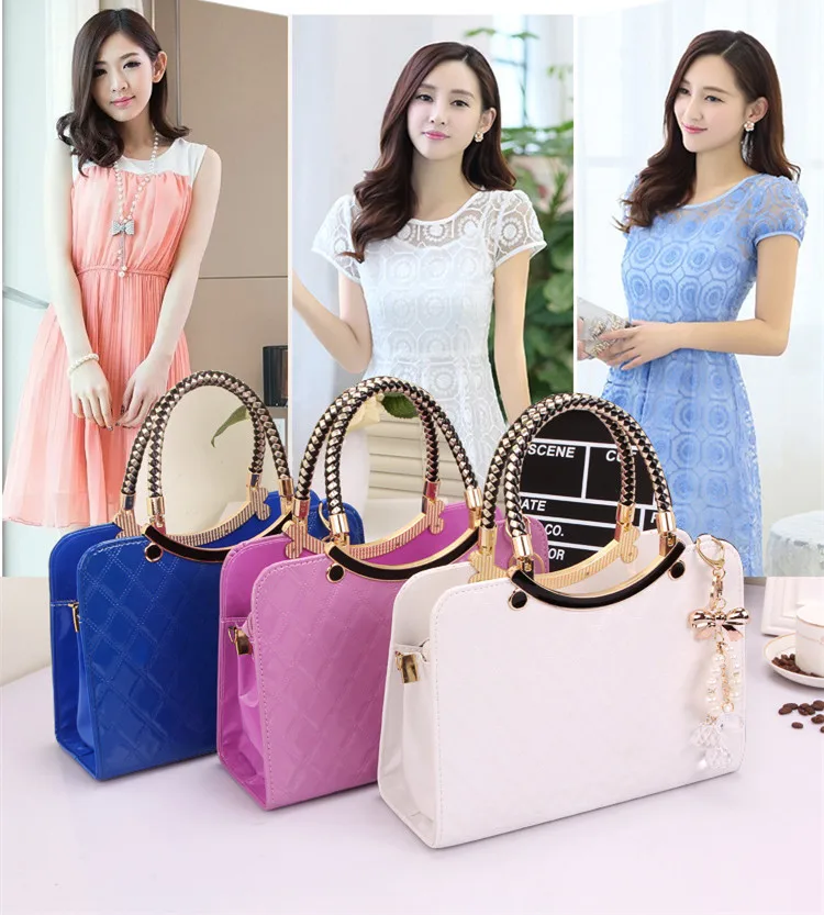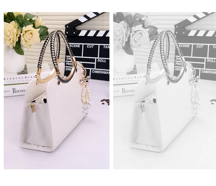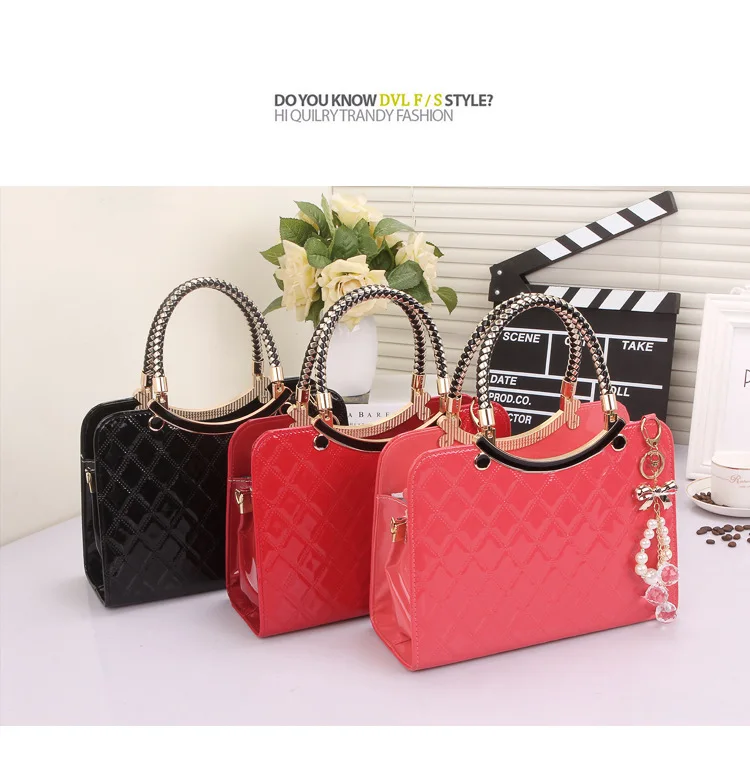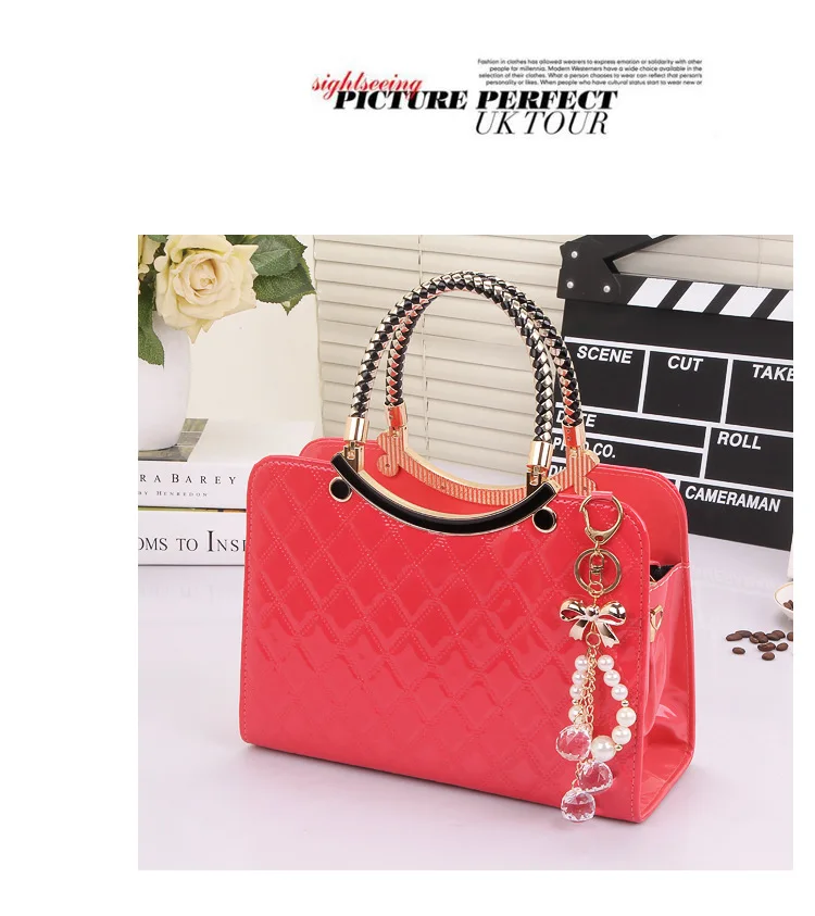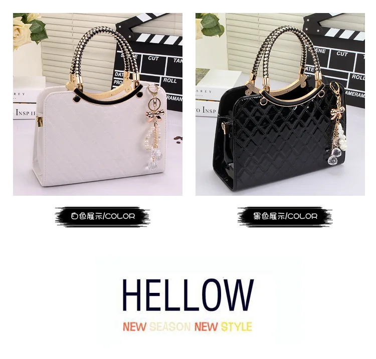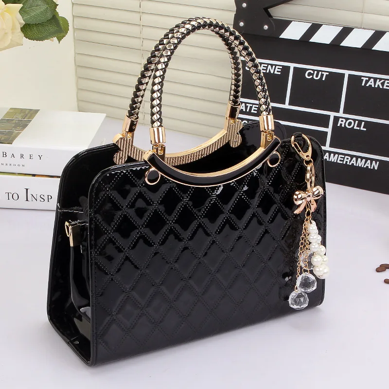 Женская сумка из лакированной кожи с жемчужной подвеской, модные дизайнерские сумки на плечо в европейском и американском стиле, жесткая женская сумка