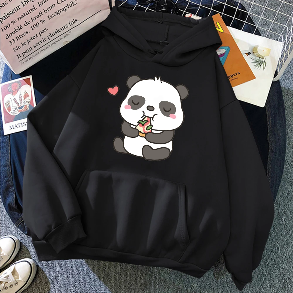 Женская толстовка с капюшоном, милая панда едает пиццу, женская одежда большого размера с круглым вырезом, спортивная одежда с милыми животными, новинка 2022, Женский пуловер