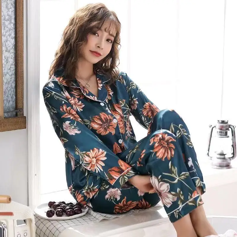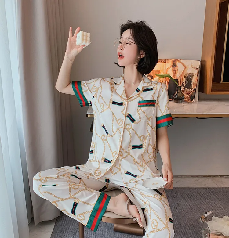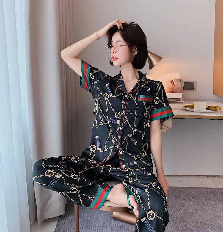 Женский пижамный комплект, Женская Повседневная Свободная Домашняя одежда с отложным воротником, роскошная одежда для сна, ночное белье большого размера