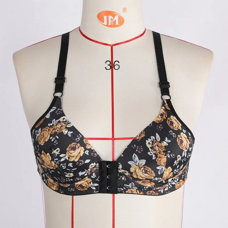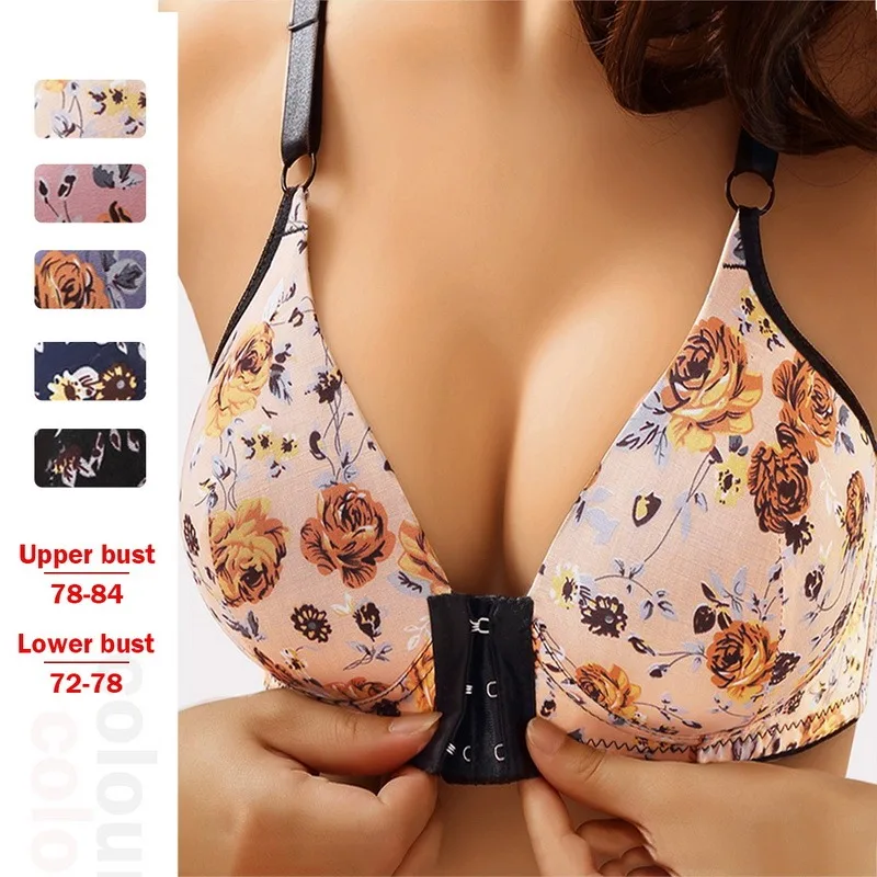 Женский цветочный бюстгальтер пуш-ап без косточек с застежкой спереди
