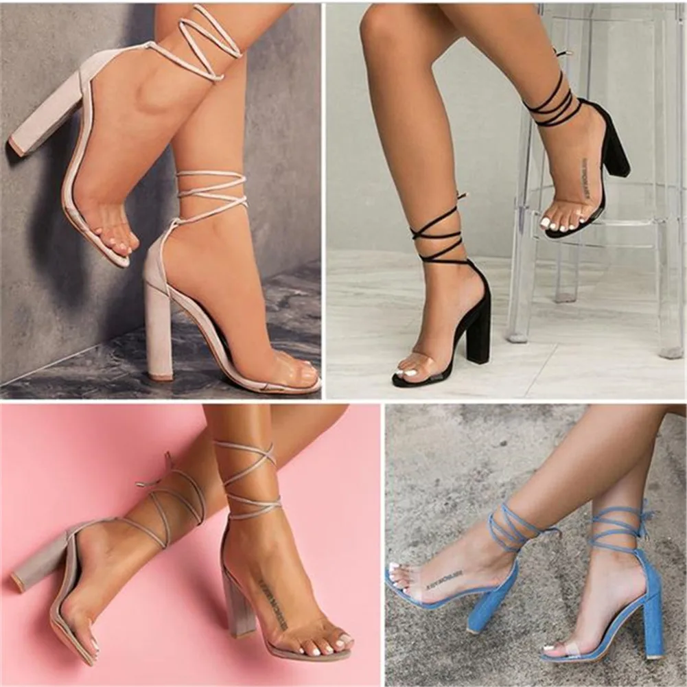 Женские босоножки на тонком высоком каблуке, прозрачные сандалии-гладиаторы с ремешком на щиколотке, женские туфли-лодочки для вечерние, лето 2021