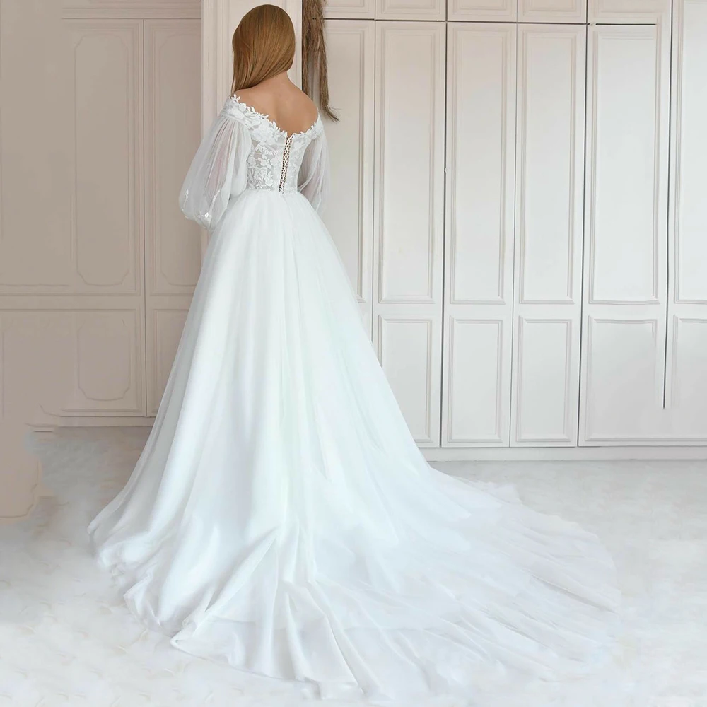 UZN/Свадебные платья трапециевидной формы с аппликацией и фатиновой юбкой, Милое Свадебное платье с длинными пышными рукавами, сексуальное платье невесты на шнуровке