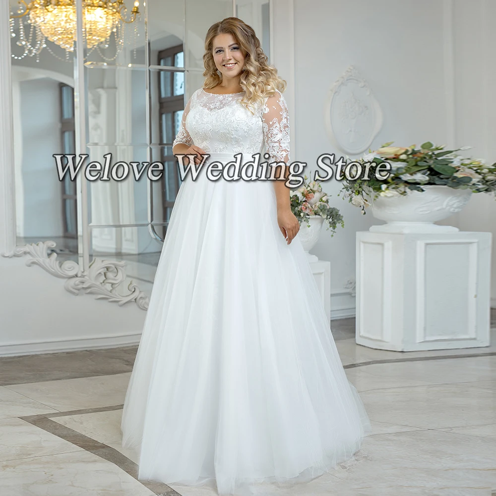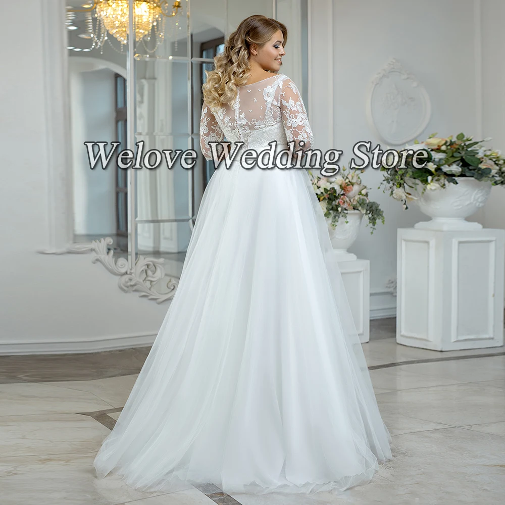 Платье свадебное белое с круглым вырезом и длинными рукавами, больш...