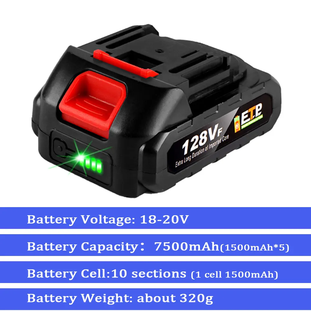 Перезаряжаемая литий-ионная батарея 20 в 7500 мАч для электрической пилыгаечного ключадрелибесщеточной угловой шлифовальной машины с низким энергопотреблением