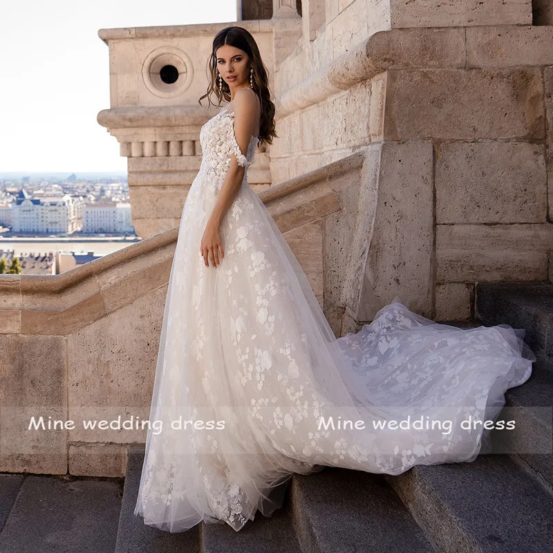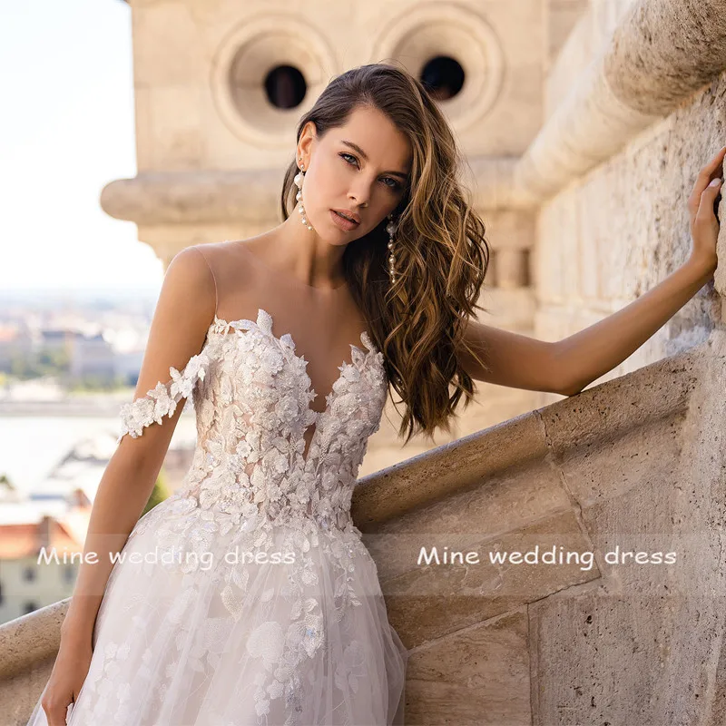 Роскошное кружевное ТРАПЕЦИЕВИДНОЕ свадебное платье из фатина с прозрачными пуговицами, свадебные платья, 2022