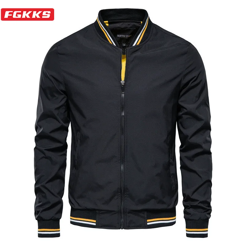 Мужская куртка-бомбер FGKKS, однотонная Повседневная приталенная бейсбольная куртка, новые осенние модные куртки высокого качества для мужчин