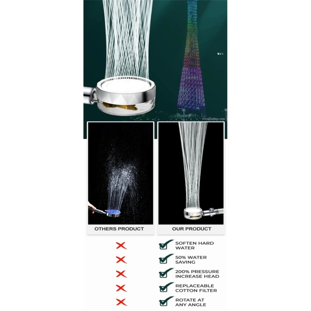 Fan 360 Rotating Power Strong Current Showerhead for BathroomShower Turbocharger Turbolux Shower Head