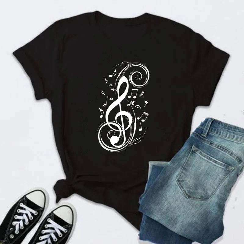 Женская футболка 2022, черная футболка с принтом музыкальных нот, ж...