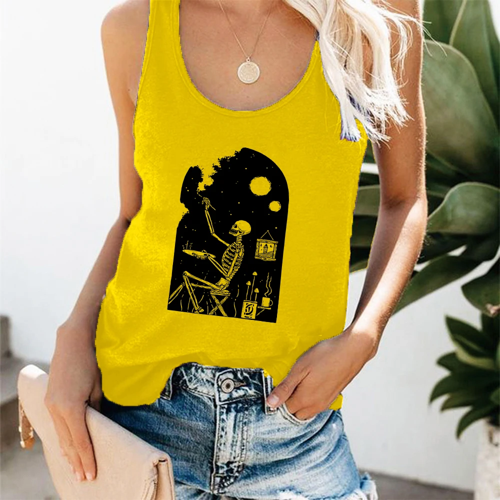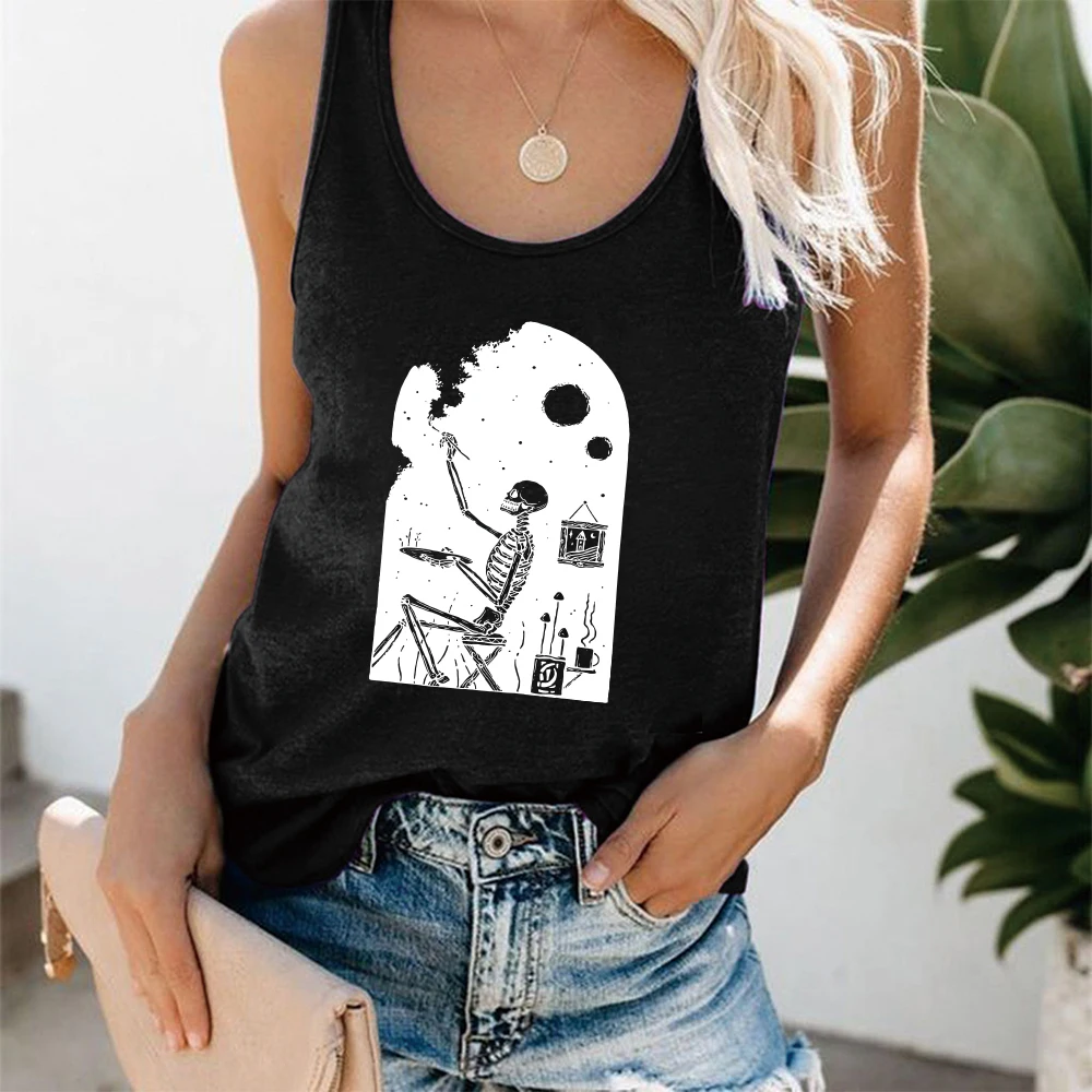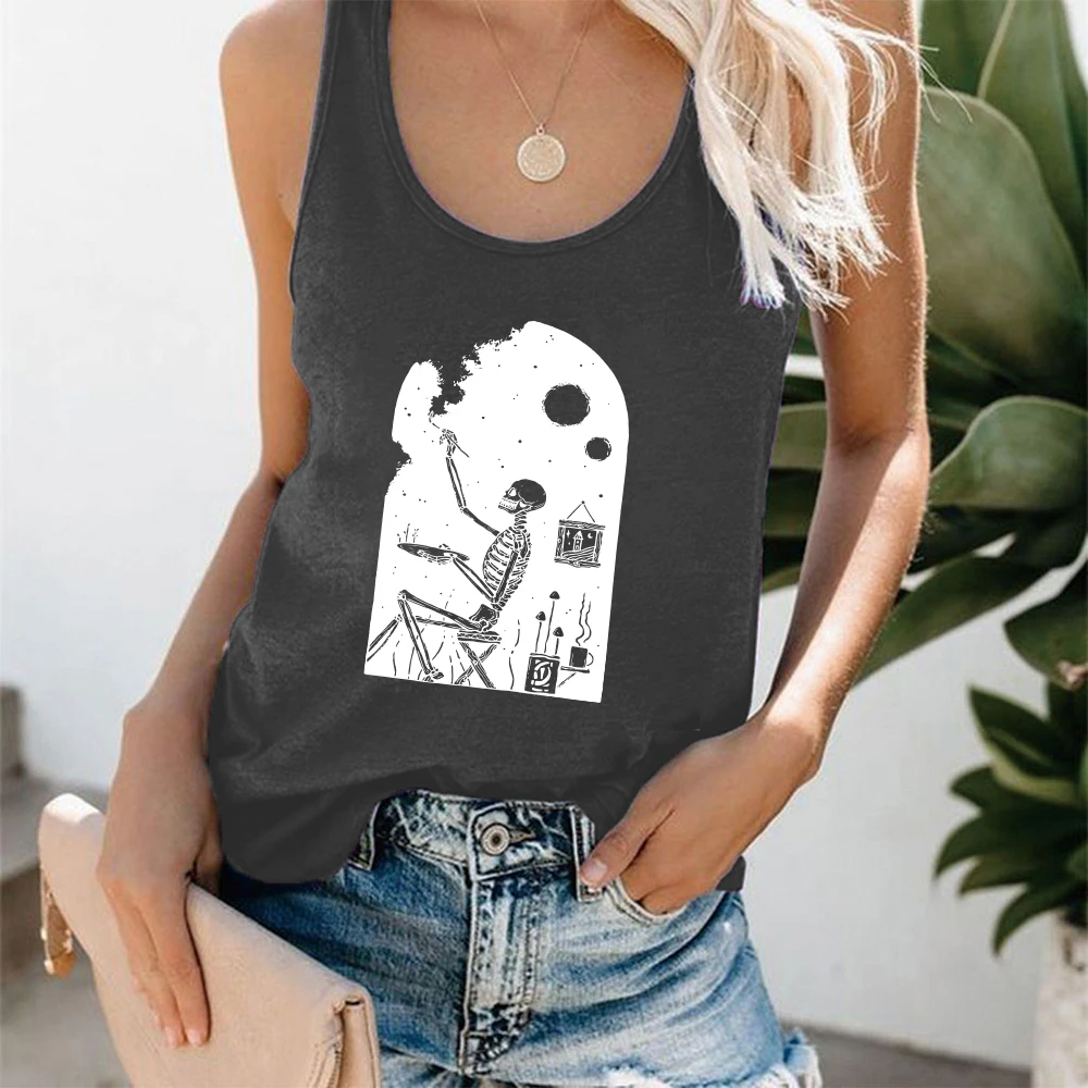 Футболка женская с принтом скелета, без рукавов, свободного покроя