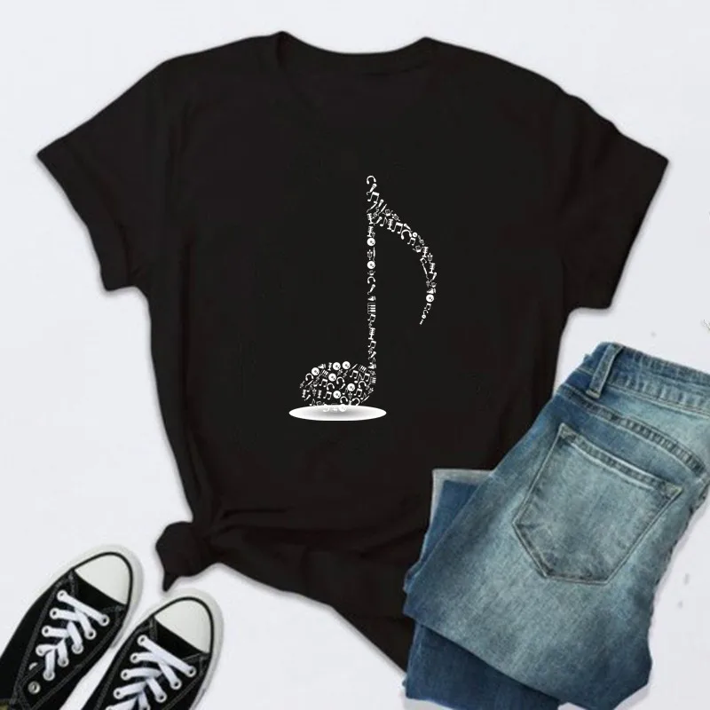 Женская футболка 2022, черная футболка с принтом музыкальных нот, г...