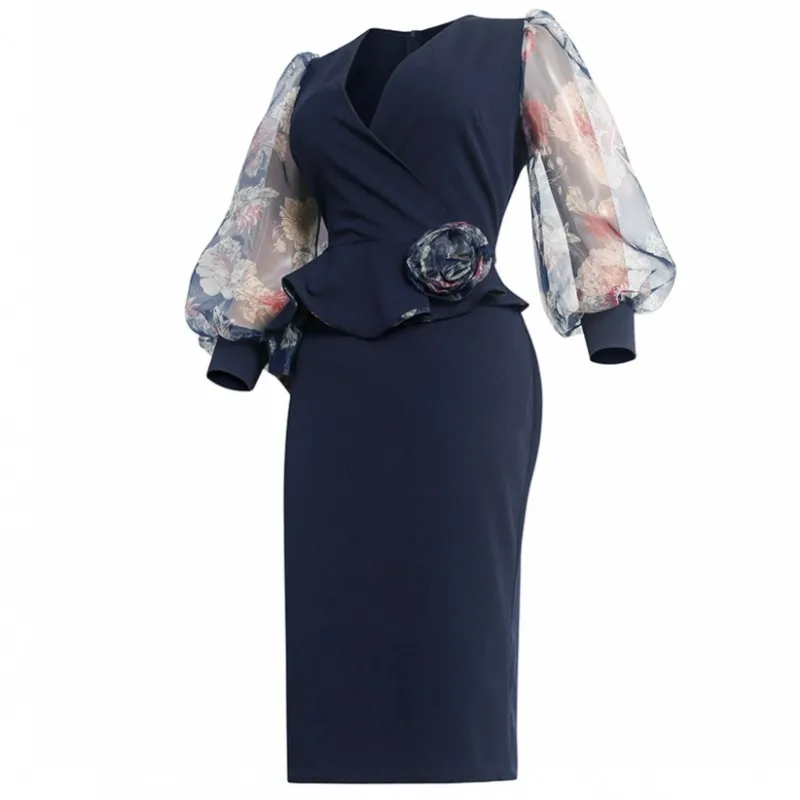 Женское платье-карандаш средней длины, с V-образным вырезом