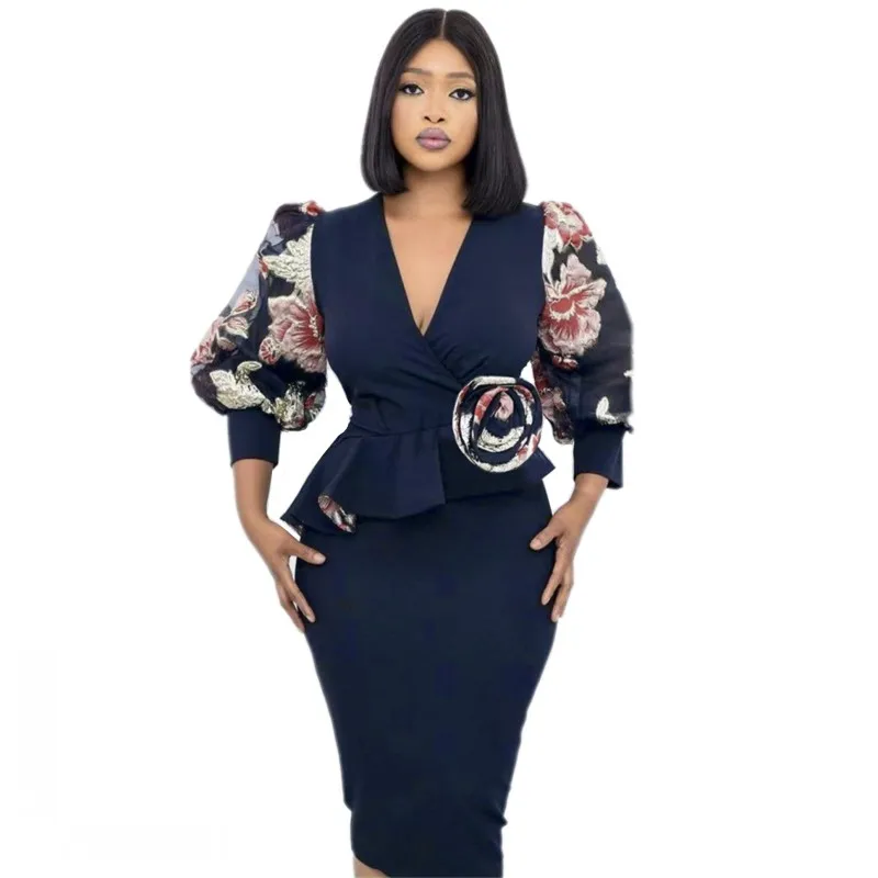 Платья в африканском стиле для женщин, вязаное платье с длинным рук...