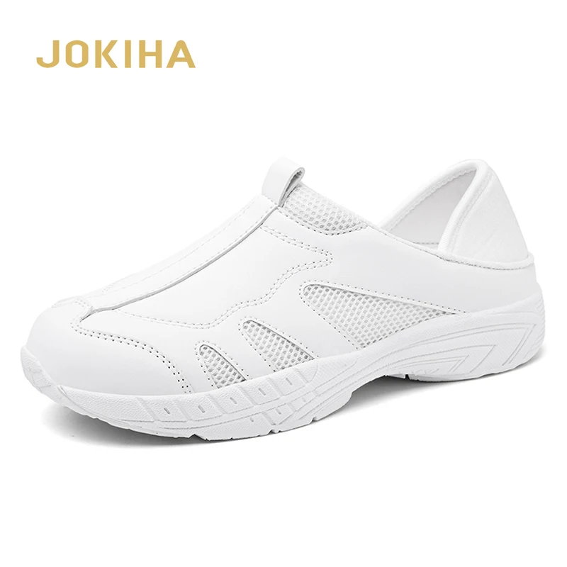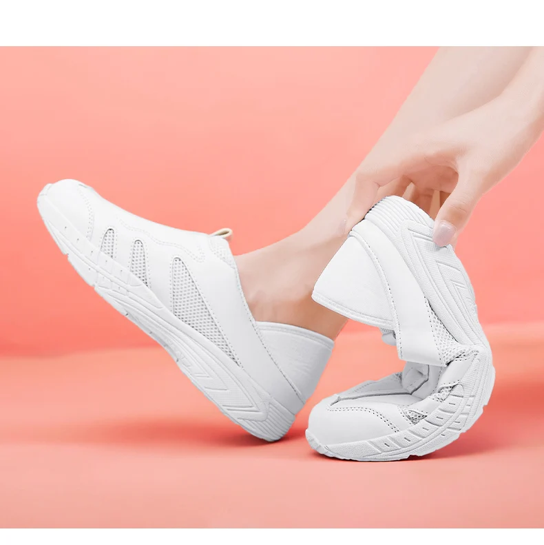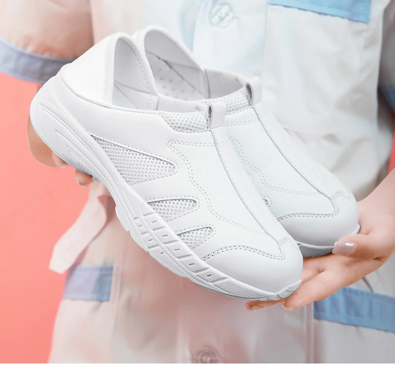 Легкие кроссовки для медсестер, дышащие сабо, плоская подошва, сетчатые, для врачей, белые