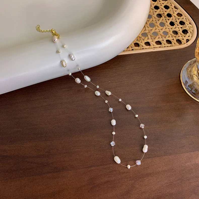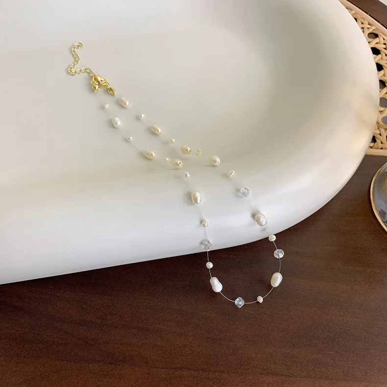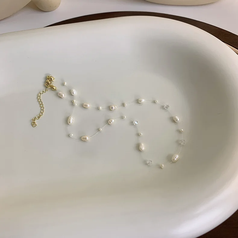 Элегантный темпераментный чокер из лески с барочным жемчугом женский простой ошейник аксессуары для шеи короткое ожерелье