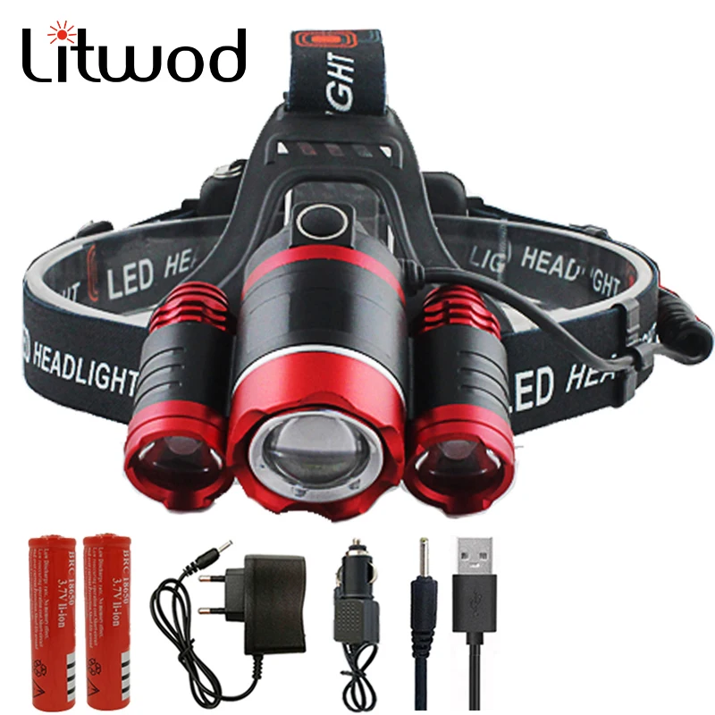 Мощный налобный фонарь XM T6 с 3 светодиодами, с масштабируемым акк...