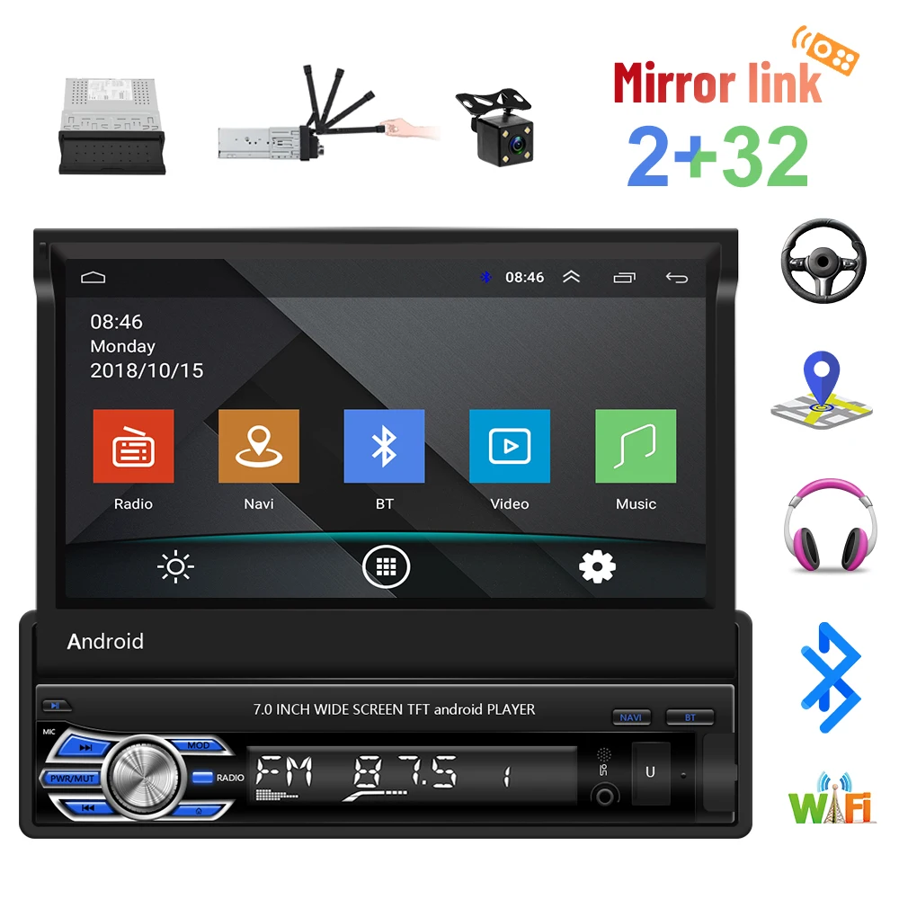 Автомагнитола Camecho, 2 + 32 ГБ, Android 10,1, 1 Din, сенсорный экран 7 дюймов, автомобильный мультимедийный плеер, GPS-навигация, Wi-Fi, автомобильное радио MP5