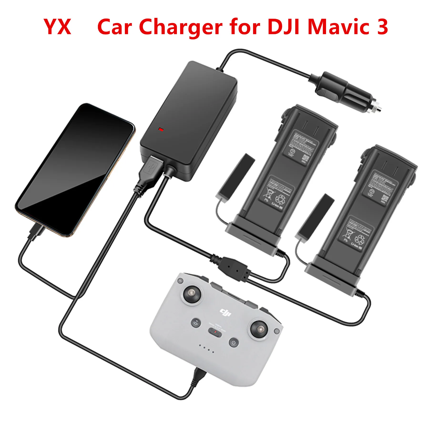 Автомобильное зарядное устройство Mavic 3 4 в 1, двойная батарея, дистанционное зарядное устройство с USB портом, зарядный концентратор, зарядное устройство для DJI Mavic 3, аксессуары для дрона