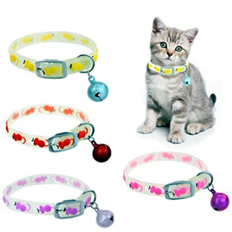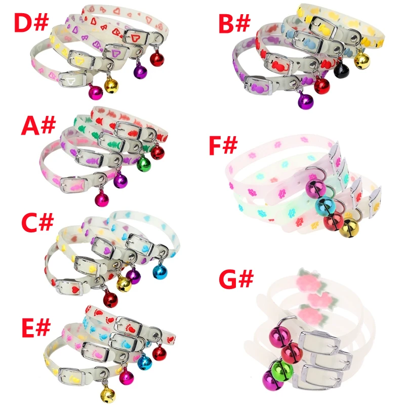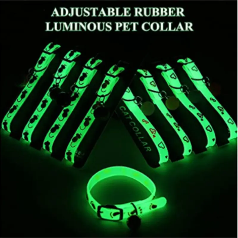 Флуоресцентный силиконовый ошейник, светящиеся ошейники с колокольчиками, светящиеся ночью, ожерелье для собак и кошек, светящиеся кольца на шею, аксессуары