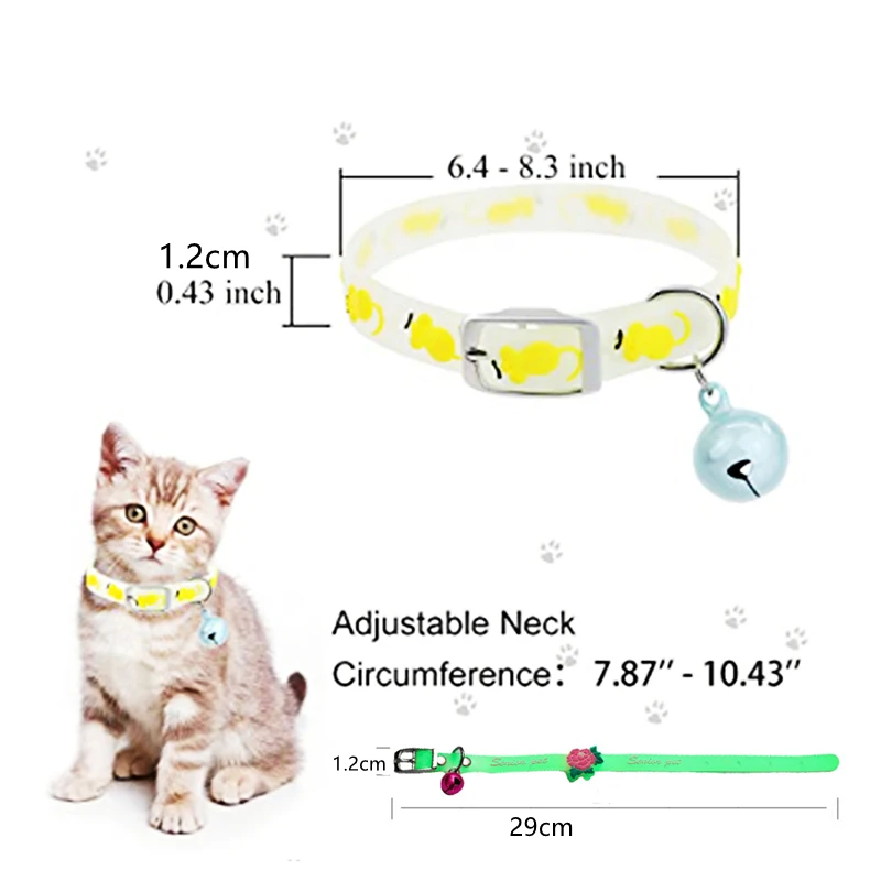 [Регулируемый]: Этот персонализированный ошейник для кота может быть отрегулировано 20-30 см (8-11,5 дюйма), ширина: 1 см (0,4 дюйма) идеально подходит для кошек, маленьких собак и других маленьких домашних животных.[Светящийся дизайн]: ошейник для котенка будет светиться ночью, чтобы помочь вам найти вашего котенка на открытом воздухе после наступления темноты, и светящийся дизайн добавляет большей безопасности.[Дизайн пряжки]: Ошейник с металлической пряжкой легко надевается и снимается, но не слишком свободный, можно использовать с держателем AirTags, чтобы ваша кошка не потерялась.[Трендовый воротник]: наш ошейник для котенка с колокольчиком поставляется с красочным колокольчиком, ярким и современным, что делает вашу кошку модной и изысканной. И приятный звон позволит вам узнать, где находится кошка, которая не повредит его слуху.[Высокое качество]: наш маленький кошачий ошейник изготовлен из высококачественных экологически чистых резиновых материалов, мягкий и прочный, можно мыть без выцветания и безопасно для вашего питомца.