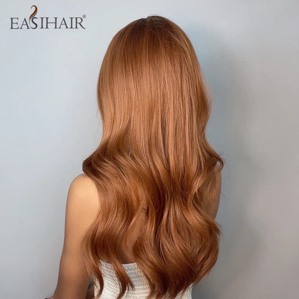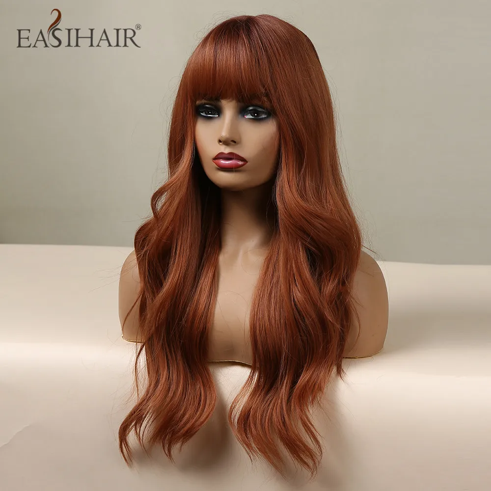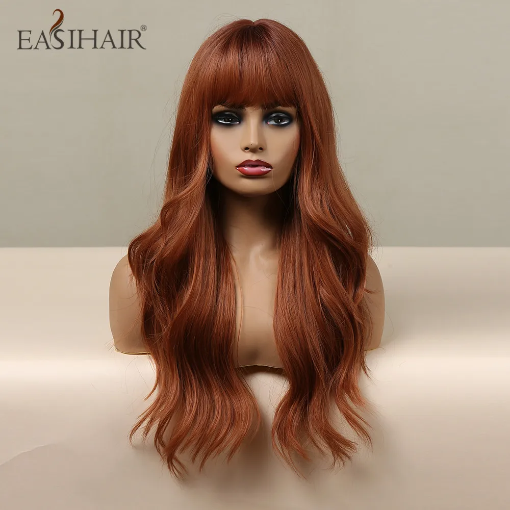 Парики из синтетических волокон EASIHAIR, медный имбирь, красный, коричневый, волнистые, с челкой, натуральные длинные волосы для женщин, повседневные, вечерние, термостойкие