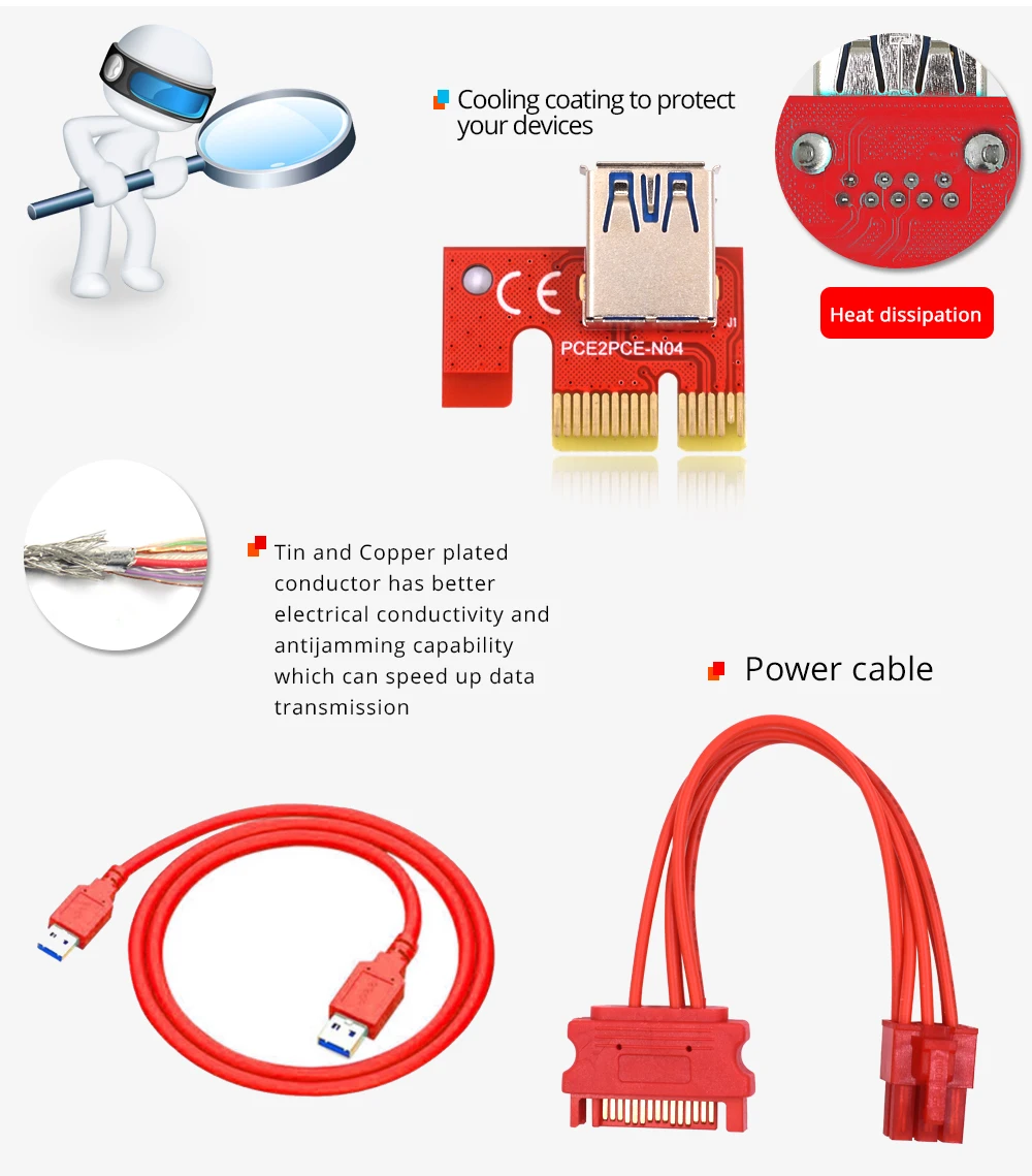 TISHRIC PCIE Riser 013 Pro GPU Riser PCI-E 16x Riser USB3.0 кабель ...