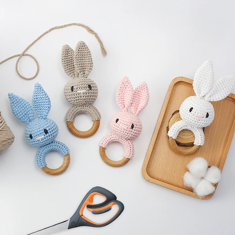 Детская погремушка крючком амигуруми погремушка кролик колокольчик новорожденный вязаный гимнастический игрушечный образовательный Прорезыватель детская Мобильная погремушка игрушка 0-12 месяцев