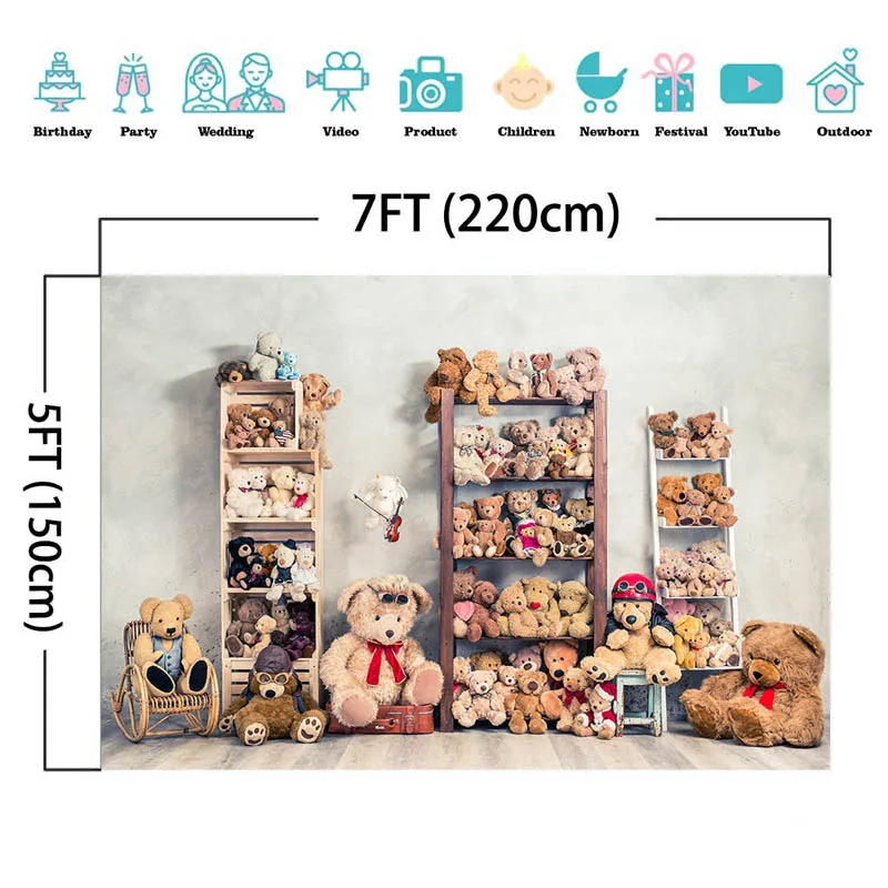Плюшевая игрушка медведь фотография Фон медведь магазин шкаф винтажная стена деревянная доска ребенок душ новорожденный торт разбивать фон