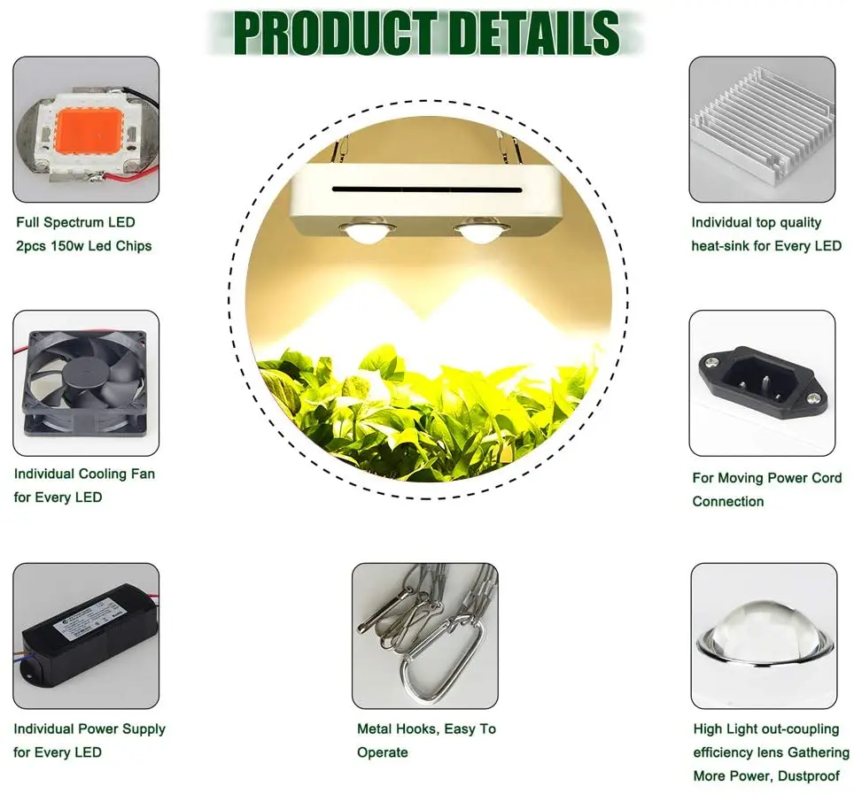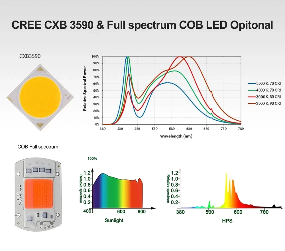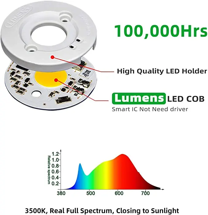 This COB grow light is a beast, you will be amazed at the power and it has a true full spectrum to maximize your plants. This light is awesome, this is my 3rd purchase and when they get their QB light up to par with their COB lights, I will buy a couple of those too. Til then I will keep rocking my COB lights, the big dense buds are amazing, I use these two COB lights in when growing. Happy Growing and Good Luck!