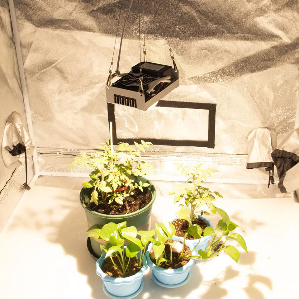 Отличная лампа. Низкий нагрев, вентилятор тихий. В зависимости от хрупкости выращивания растений, будьте осторожны, чтобы не слишком закрыть лампу! Хрупкие растения, такие как салат/Василий, оставляют не менее 50-60 см от топов растений, они будут гореть, если слишком близко! Эквивалент 300 Вт HPS для менее половины расходов на электричество. Стоит своих денег.