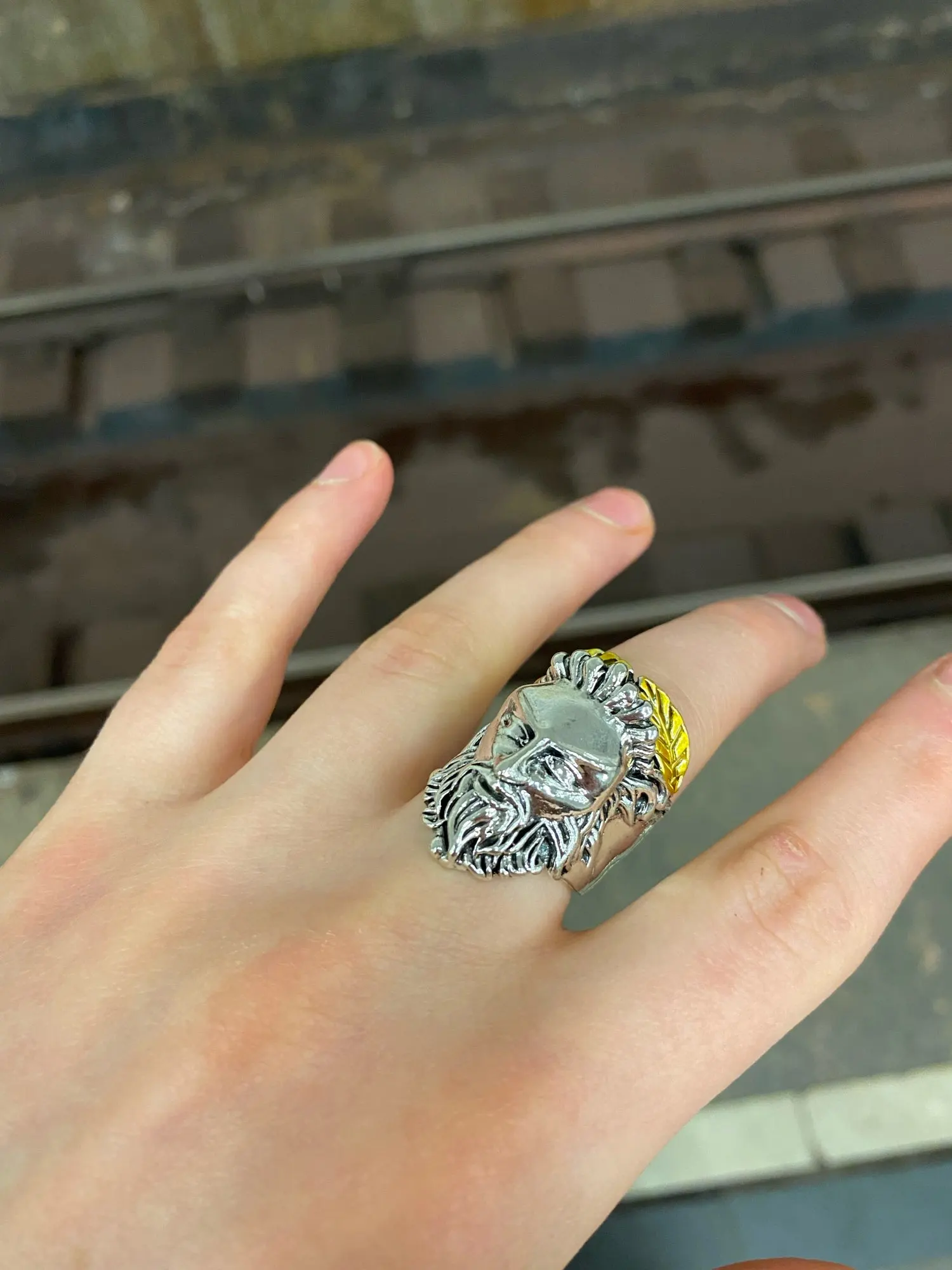 винтаж кольца Классическое мужское кольцо с изображением Иисуса сер...