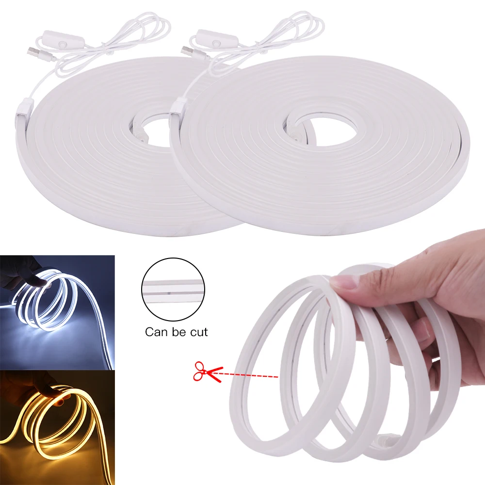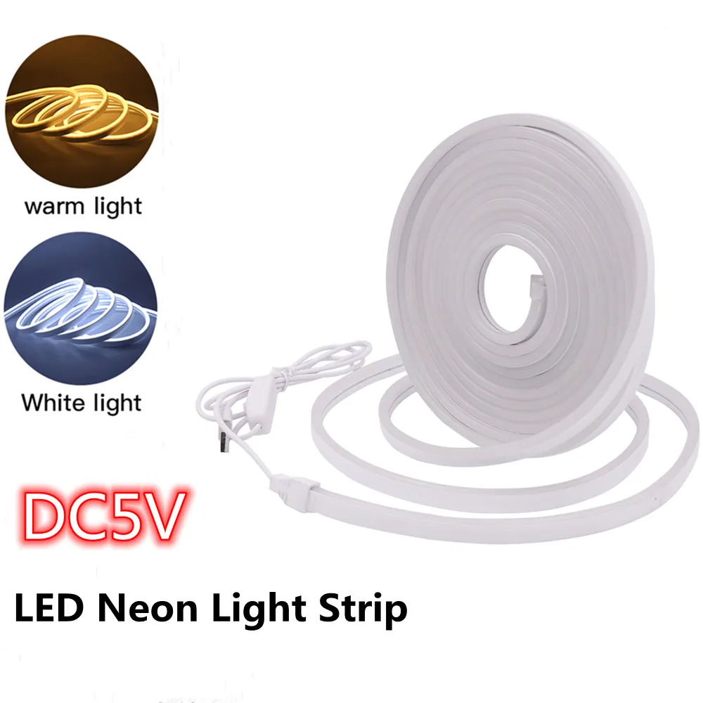 5 в постоянного тока USB светодиодная неоновая световая вывеска полоса с переключателем ВКЛ.ВЫКЛ. 120 светодисветодиодный sm гибкая лента 2835 SMD силиконовая трубка водонепроницаемый Шнур белый теплый