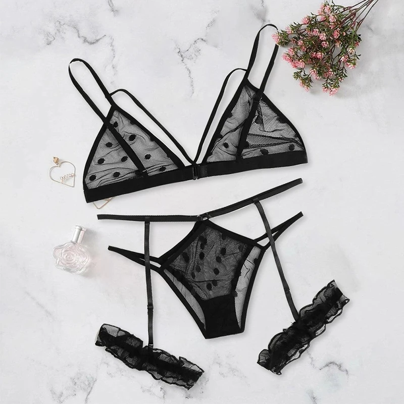Комплект женского дышащего прозрачного нижнего белья, черного цвета...