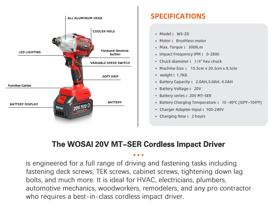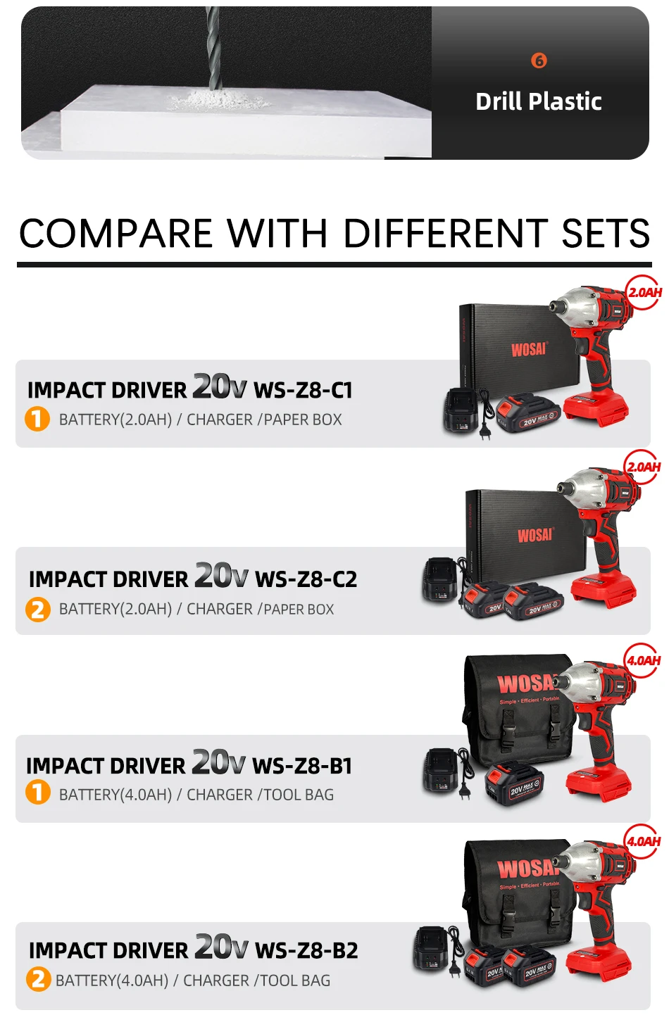 WOSAI 20 в бесщеточный Электрический шуруповерт 300нм литий-ионный аккумулятор Аккумуляторный шуруповерт бытовые ударные электроинструменты
