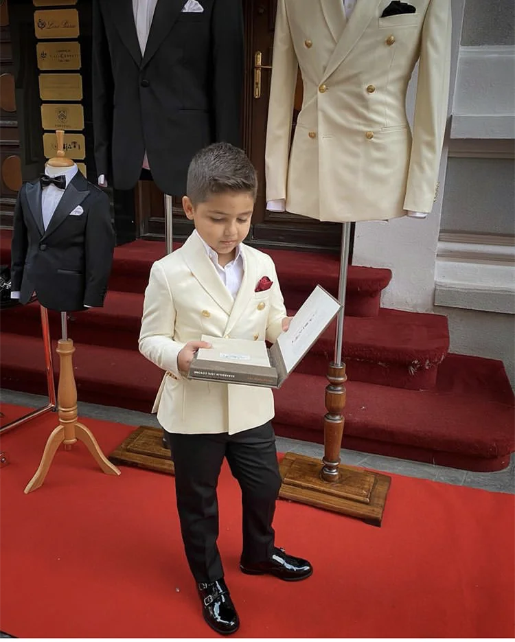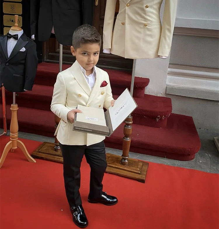 Модель 2022 года, костюмы для мальчиков с пиковым отворотом и черными брюками, мужские костюмы, смокинги для свадьбы и жениха, облегающие детские костюмы для выпускного вечера, 2 шт.
