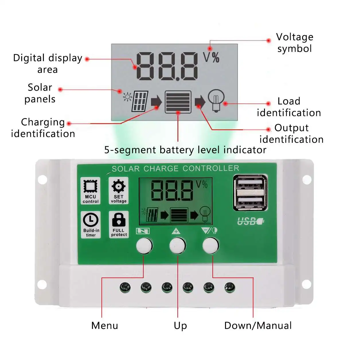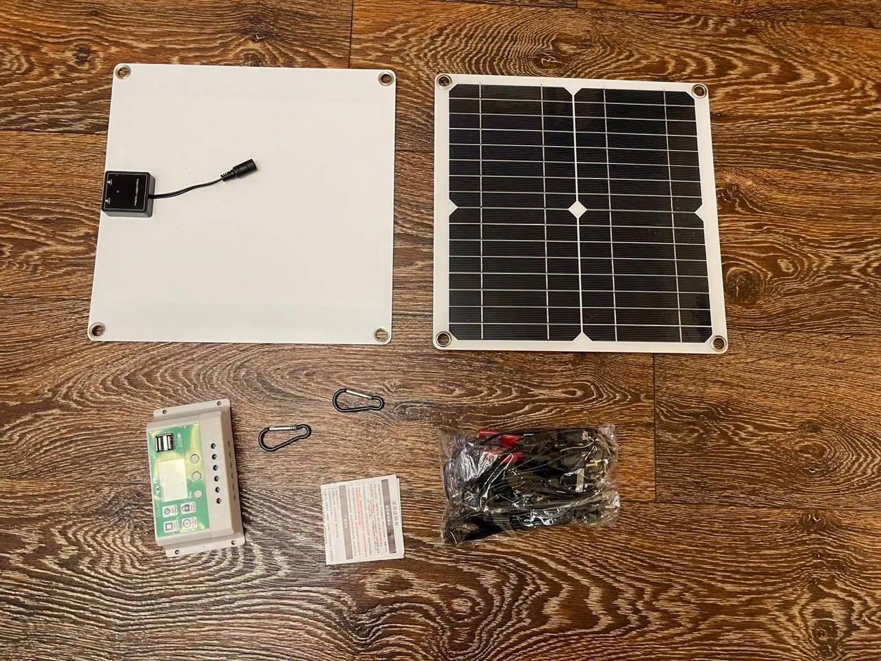Упаковка включает:Тип A:1 x 30A Солнечный контроллерТип B:1 X Панель солнечных батарей4 X присоска1 X крокодилАвтомобильное зарядное устройство-1 шт.Тип C:1 X Панель солнечных батарей4 X присоска1 X крокодилАвтомобильное зарядное устройство-1 шт.1 x 30A Солнечный контроллерТип D:1 X Панель солнечных батарей4 X присоска1 X крокодилАвтомобильное зарядное устройство-1 шт.1 x Солнечный контроллер 60A