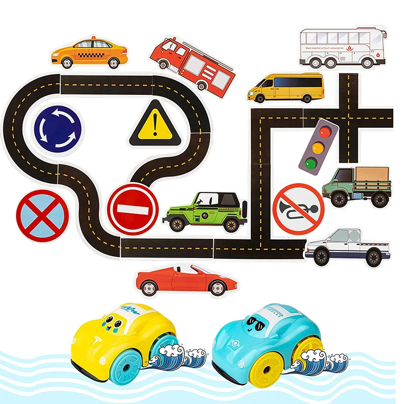 Набор игрушек для ванны 23 шт. тема движения пенные Игрушки для ванны и плавающий Заводной Автомобиль Игрушки для ванны для малышей искусственные подарки для мальчиков и девочек
