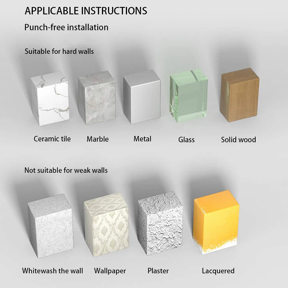 1. Подходящая Поверхность: чистые, сухие и гладкие поверхности стен, такие как керамическая плитка, мраморный камень, металл, стекло и т. д.