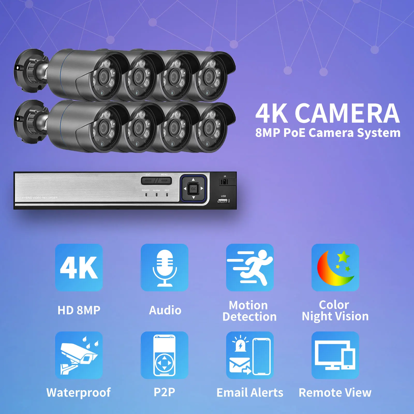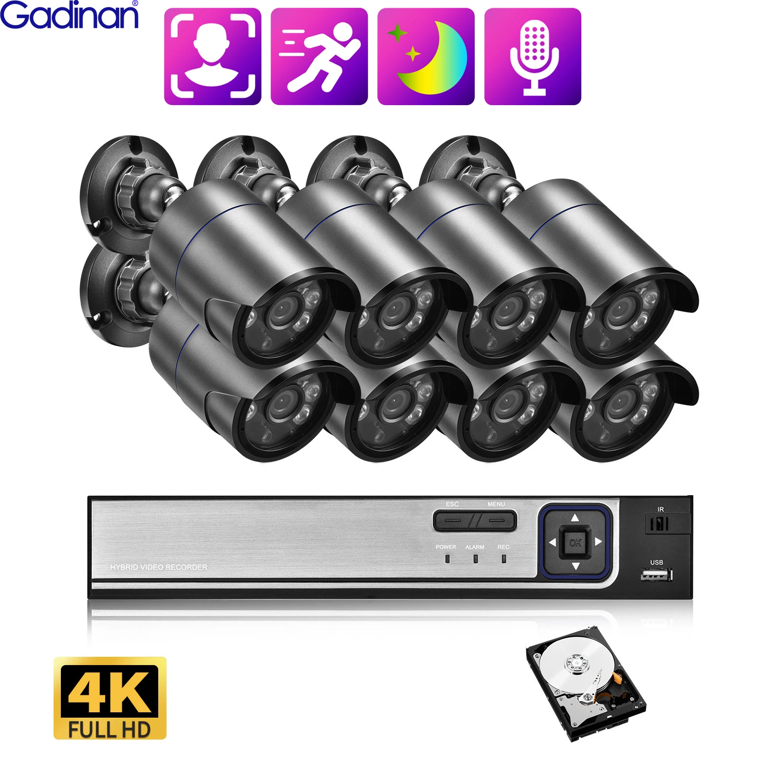 Система видеонаблюдения Gadinan Ultra HD 4K, 8-канальный сетевой видеорегистратор POE AI, уличная цветная камера наблюдения с разрешением 5 Мп 8 Мп, с функцией распознавания лица
